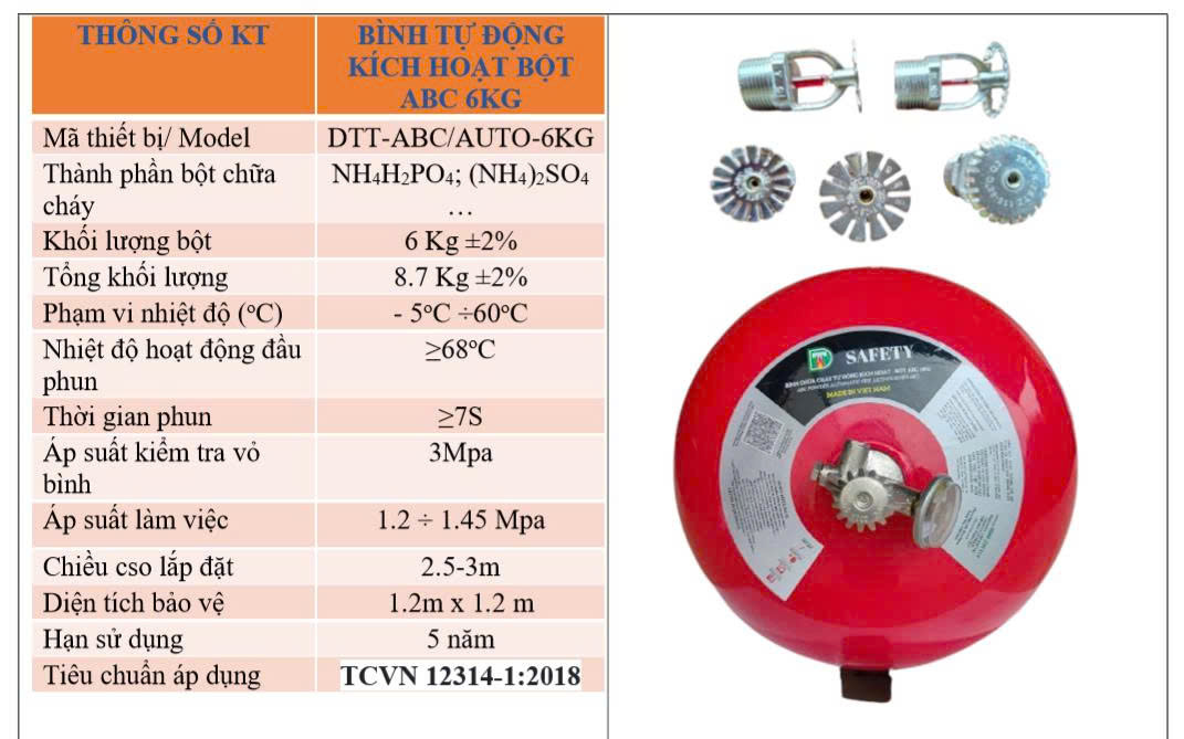 Mã thiết bị/Model Bình cầu chữa cháy bột ABC 6kg Safety Việt Nam có kiểm định: DTT-ABC/AUTO-6KG