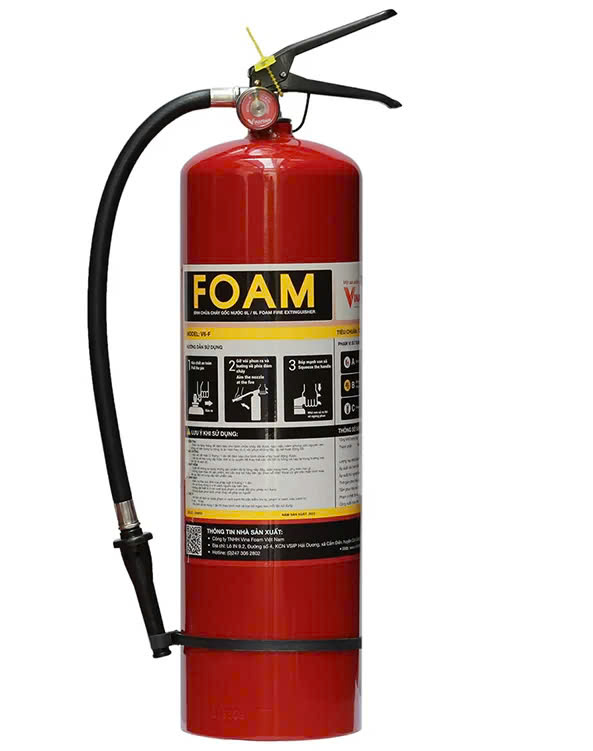 Bình chữa cháy Vinafoam gốc nước 6 lít (AFFF Foam) V6-F xách tay dạng bọt là bình chữa cháy đa năng thích hợp để đập các đám cháy chất rắn loại A và đám cháy chất lỏng loại B. Bình chữa cháy dạng bọt sử dụng chất tạo bọt chữa cháy AFFF 3% là sự pha trộn của chất hoạt động bề mặt perfluorinated và hydrocacbon. Nó cho phép hình thành một màng nước có khả năng lan truyền trên bề mặt của nhiên liệu đang cháy, ngăn cản sự sản sinh hơi và niêm phong bề mặt từ oxy giúp dập tắt đám cháy hiệu quả và ngăn cháy trở lại
