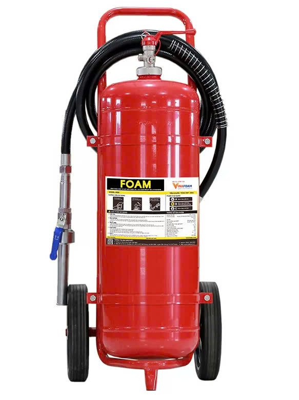 | Ứng dụng | Xe đẩy chữa cháy Foam 50 lít Vinafoam V50-F là bình chữa cháy đa năng thích hợp để đập các đám cháy chất rắn loại A và đám cháy chất lỏng loại B |