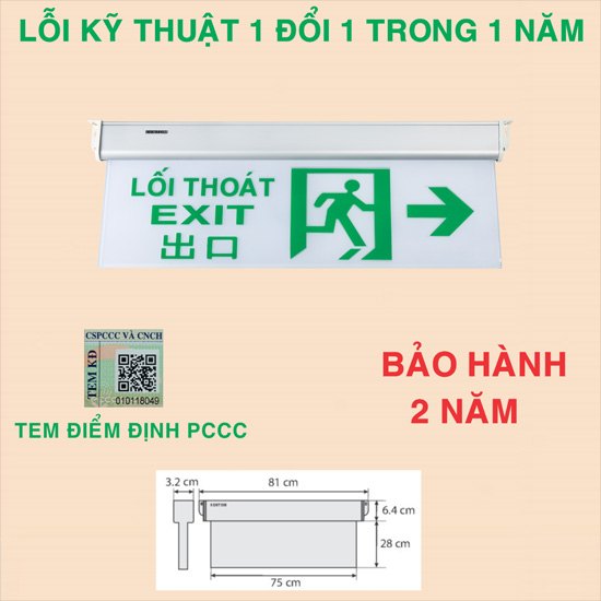 - Kích thước đèn Đèn exit lối thoát Kentom KT700: 81 x 23.4 x 3.2 cm