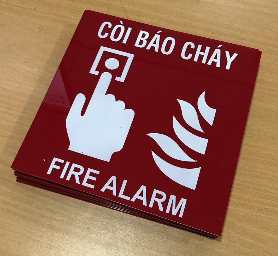4. Gia công giá rẻ Bảng vị trí còi báo cháy (Fire Alarm) bằng mica