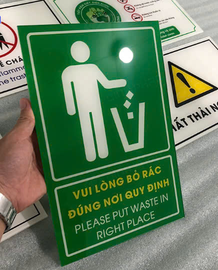 Biển báo bỏ rác đúng nơi quy định bằng Mica là một sản phẩm bền đẹp, có tính ứng dụng cao, giúp tạo ra môi trường sống và làm việc sạch sẽ, an toàn và thân thiện với cộng đồng.