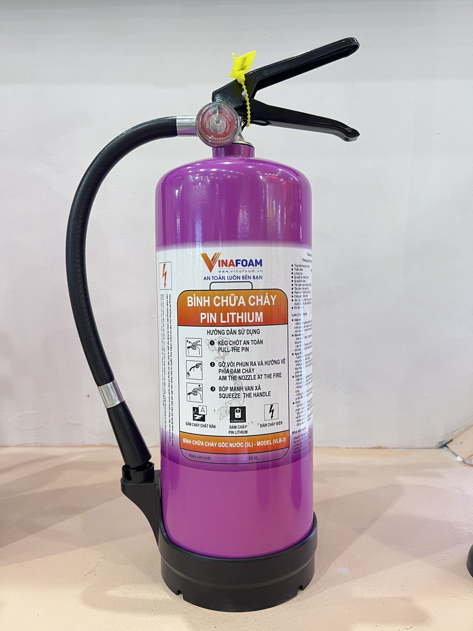 Đây là sản phẩm bình chữa cháy đặc biệt cho việc chữa cháy pin nghiên cứu và phát triển bởi thương hiệu Vinafoam Việt Nam sử dụng cho các nhà máy sản xuất xe điện, gara ô tô, tầng hầm chung cư và một số khu vực trung tâm bảo hành sửa chữa pin lithium. Mẫu chuyên dụng có giá rất cao và chưa có tem kiểm định. Nếu quý khách cần một loại bình đa năng giá rẻ hơn có thể dập lửa pin