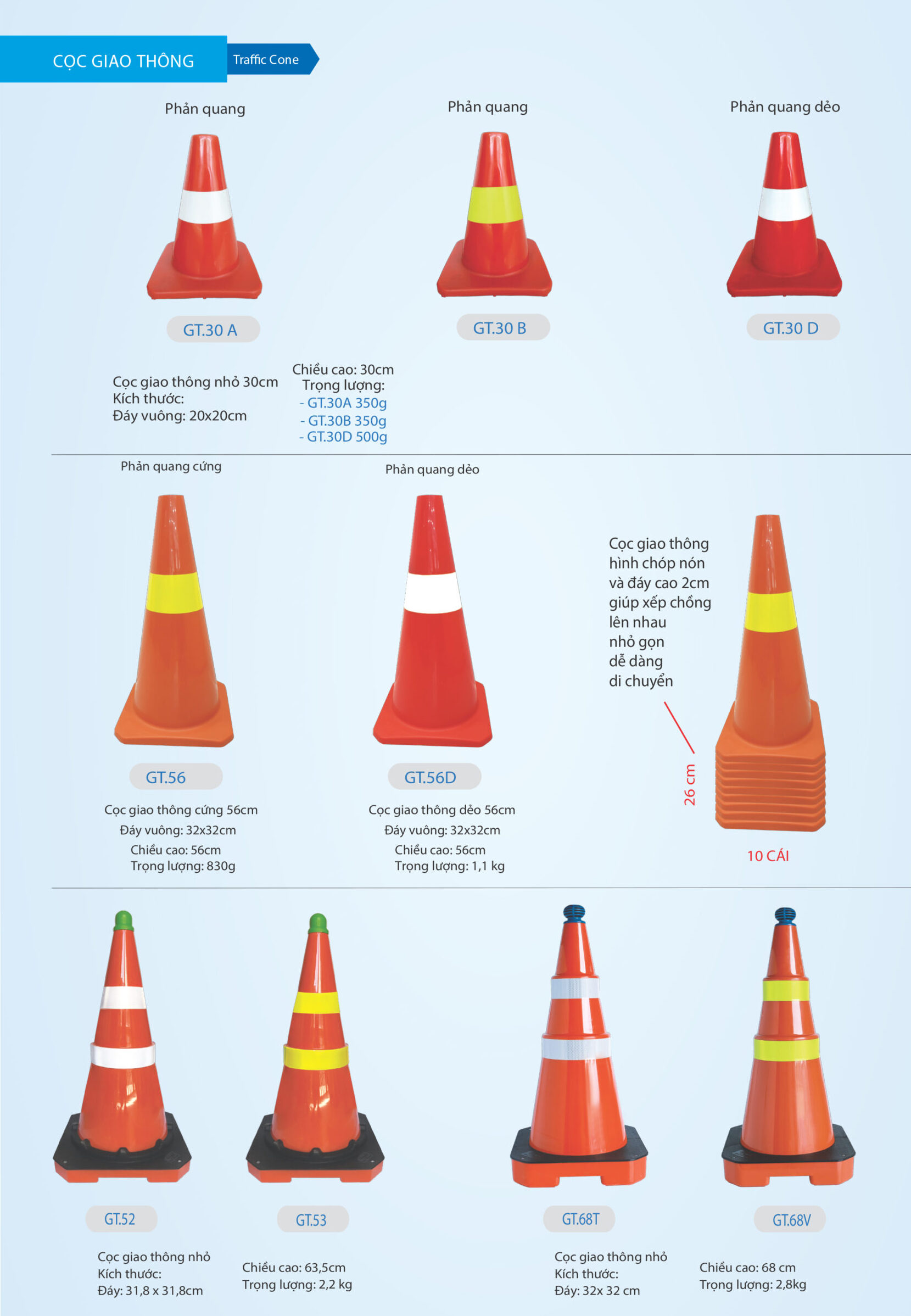 - Vị trí sử dụng: Cọc tiêu giao thông chóp nón được sử dụng rộng rãi trong giao thông đường bộ, cảnh báo công trường đang thi công trên đường phố, phân làn tạm thời tại các khu đô thị, tòa nhà, bãi đỗ xe công cộng,...