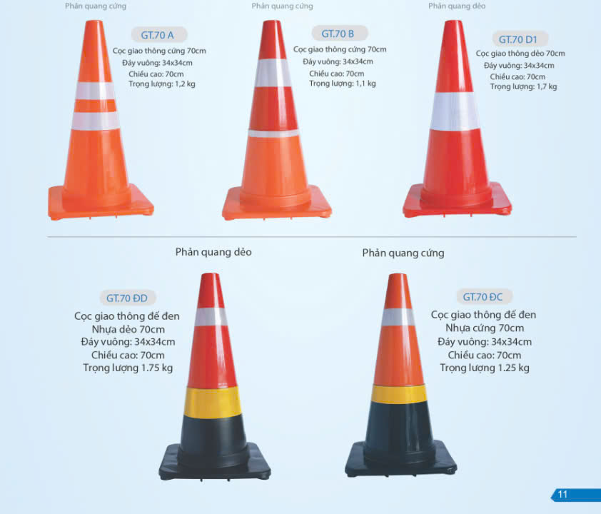 - Cọc tiêu chóp nón dùng làm cọc tiêu di động, cọc tiêu công trình đường bộ, cọc tiêu rào chắn.