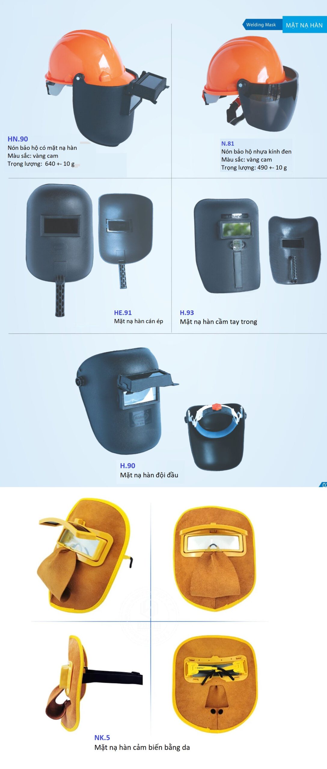 - Nón bảo hộ có mặt nạ hàn: Nón bảo hộ có mặt nạ hàn là thiết bị bảo hộ kết hợp giữa nón bảo hộ lao động và mặt nạ hàn, được thiết kế để cung cấp bảo vệ toàn diện cho người lao động trong quá trình hàn. Dưới đây là một số đặc điểm và lợi ích của loại nón này: