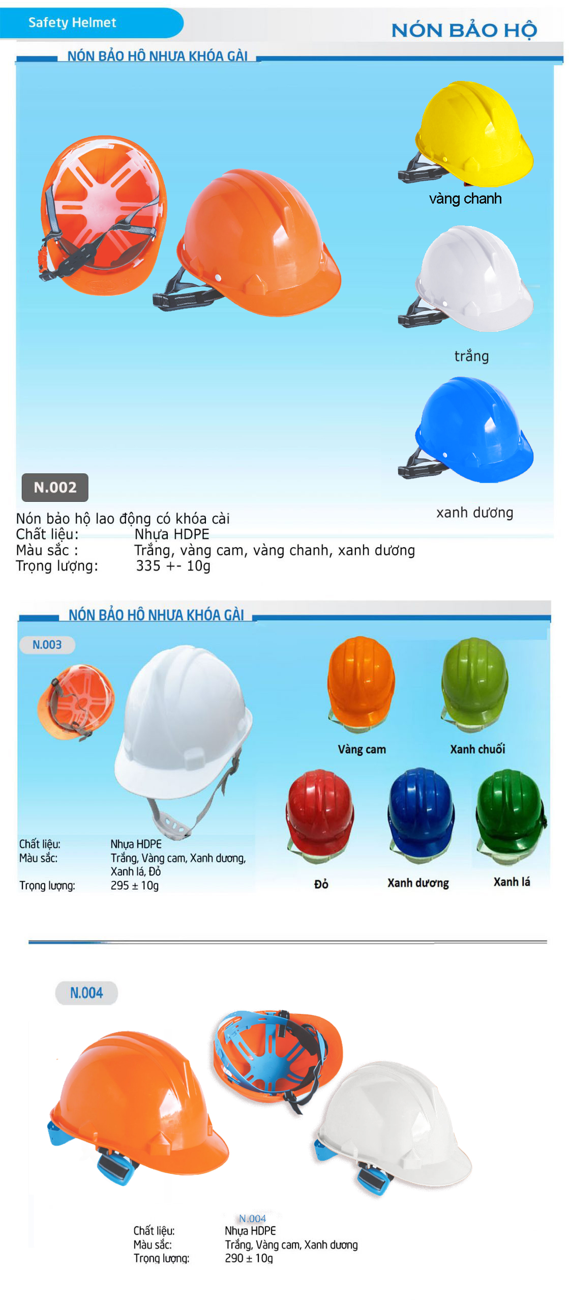 t5. **Thích hợp cho nhiều môi trường**: Nón bảo hộ có nhiều loại và kiểu dáng khác nhau, phù hợp với nhiều ngành nghề và điều kiện làm việc.