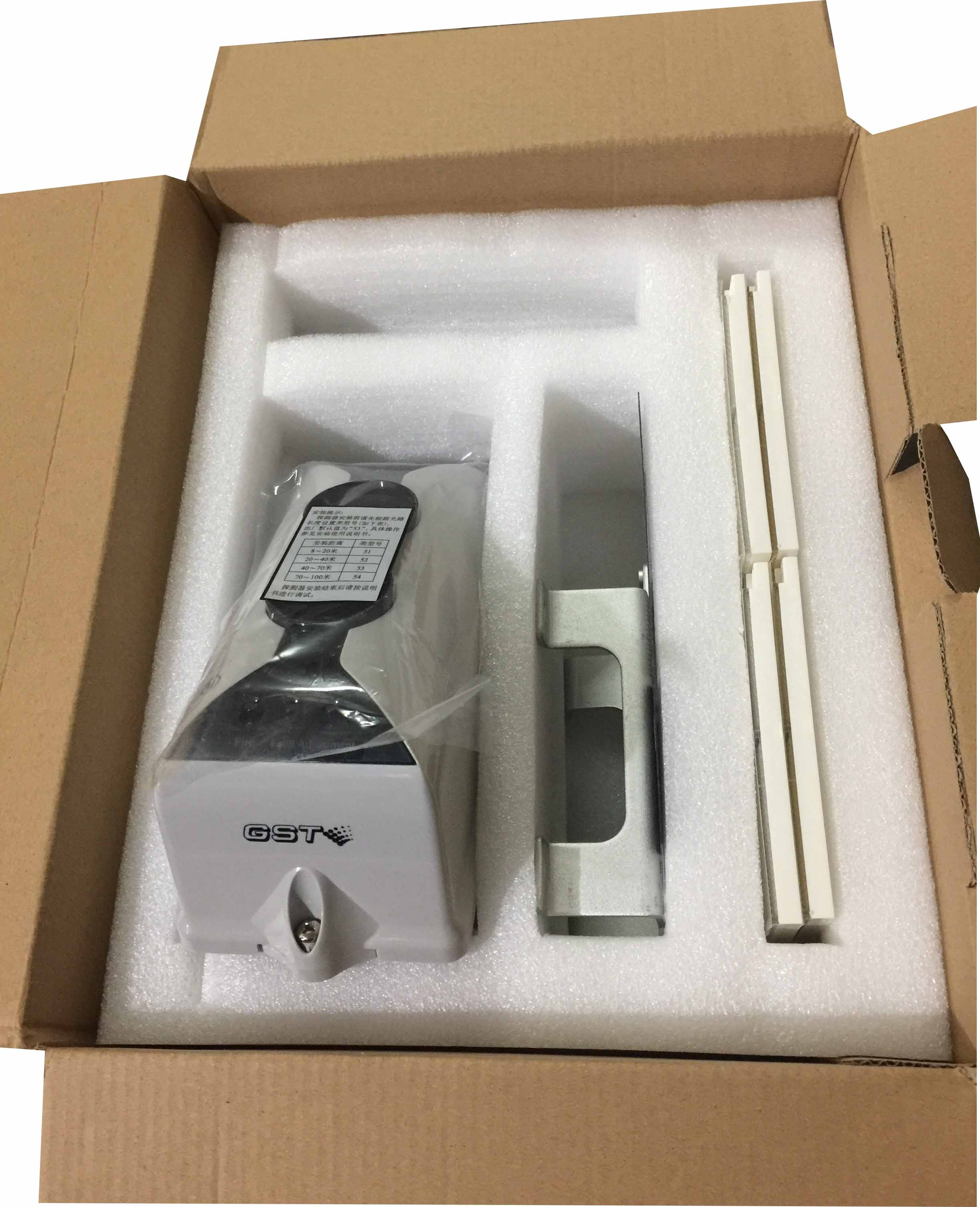 Đầu báo Beam làm việc theo nguyên tắc bị chắn ánh sáng. Khi có cháy, khói từ đám cháy bay lên đi vào khu vực bảo vệ, cắt ngang đường hồng ngoại của đầu báo sẽ làm suy giảm tín hiệu hồng ngọai tới đầu thu. Khi độ làm mờ đạt tới ngưỡng báo động được đặt trước, đầu báo sẽ phát một tín hiệu báo động cháy. Sản phẩm được làm bằng nhựa chống cháy cao cấp ABS vừa bền vừa chống lửa tốt mang lại khả năng hoạt động tuyệt vời khi xảy ra sự cố cháy nổ. Sản phẩm tuân thủ theo tiêu chuẩn CE và tiêu chuẩn EN-54. Đặt khung lắp ở vị trí có ý định cài đặt máy dò; dấu các vị trí của bốn lỗ của khung gắn trên tường. Khoan các lỗ trên các vị trí được đánh dấu, và đóng con nở ∅6. Cố định khung gắn trên tường với bốn vít nở ∅6 và vòng đệm phẳng. Tháo nắp trên của đầu báo khói beam gst, luồn dây qua lỗ bên trong và lỗ knock-off, đảm bảo dây dẫn đủ dài thuận tiện cho việc đấu nối. Cố định đế đầu báo khói beam gst với hai bu lông M4 × 10 và vòng đệm phẳng.