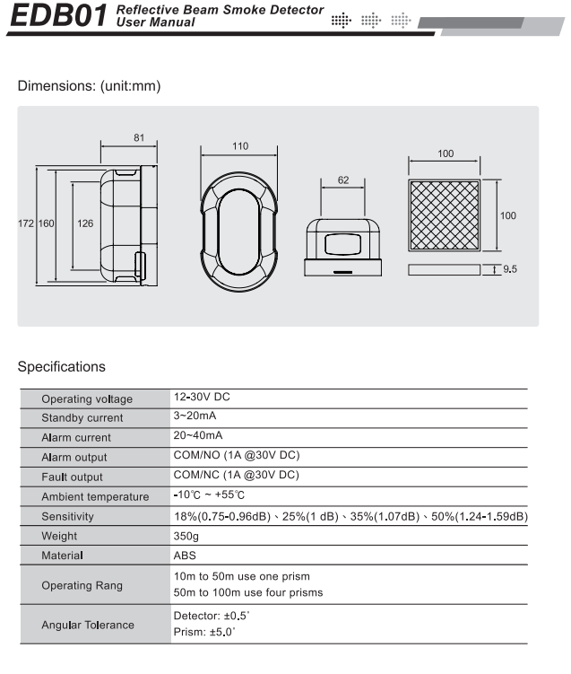 4. Thông số kỹ thuật Đầu Báo Khói Beam Horing EDB01 (Thiết Bị báo Khói Horing)