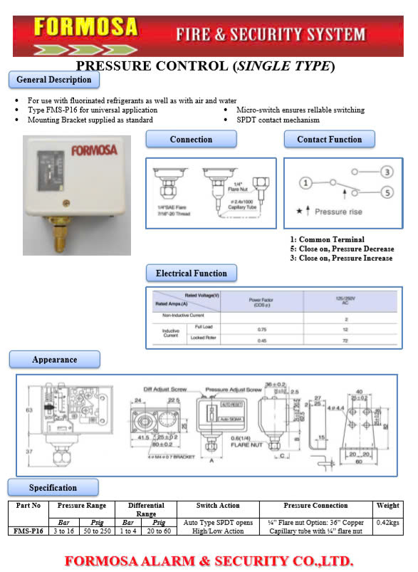 1. Tính năng chính Công Tắc Áp Lực Formosa FMS-P16 Taiwan