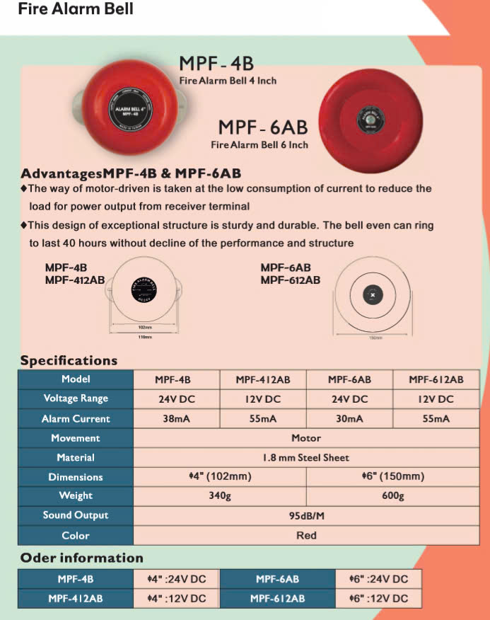 2. Catalogue Chuông báo cháy 24V 4" MPF-4B Taiwan