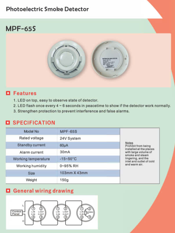 1. Mô tả thông số kĩ thuật Đầu báo khói 24V Taiwan MPF-65S