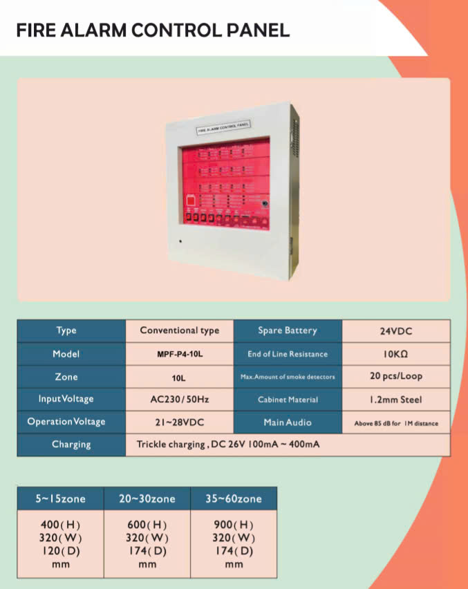 1. Thông tin chi tiết Tủ trung tâm báo cháy 10 kênh MPF-P4-10L Taiwan