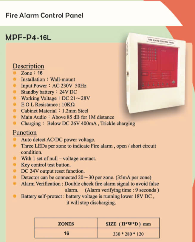 2. Thông số kĩ thuật Tủ trung tâm báo cháy 16 kênh MPF-P4-16L Taiwan