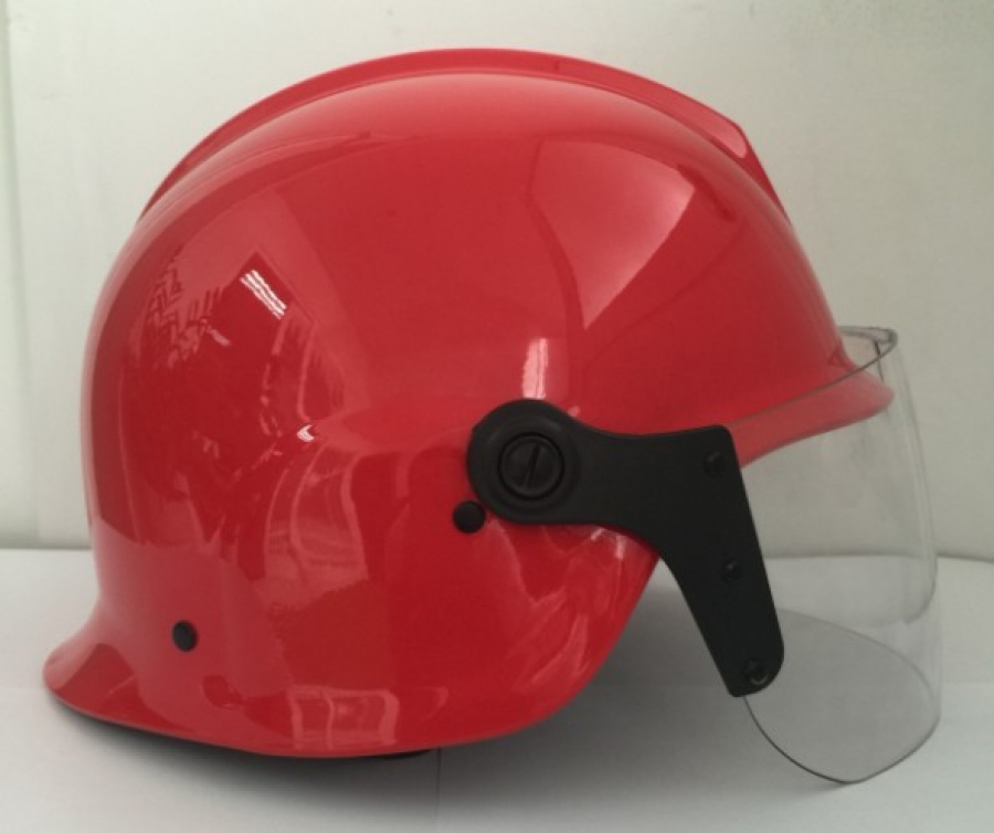 – Phía trước mũ có kính bảo vệ bằng nhựa Polycarbonate (PC) không màu, bề dày 02 mm, giúp cản bụi, gió, hơi nóng khi chữa cháy.