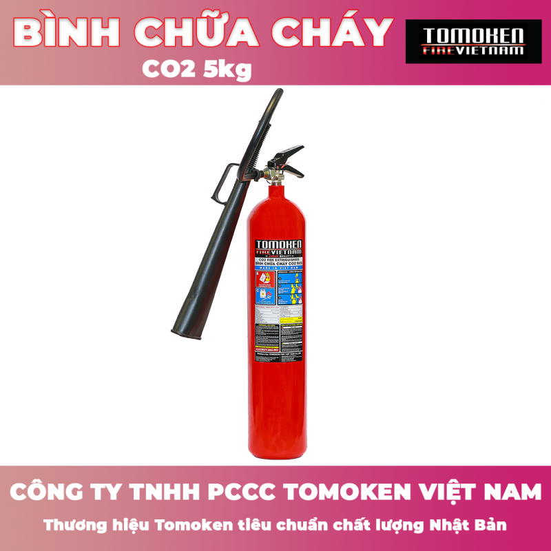Bình chữa cháy xách tay loại khí CO2 5KG -Bình chữa cháy Tomoken khí CO2 5kg TMK-VJ-CO2/5kg là loại bình được sản xuất bởi công nghệ Nhật Bản. Sản phẩm được kiểm soát nghiêm ngặt về chất lượng, áp lực, và năng lực chữa cháy tuyệt vời.