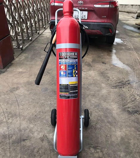 | Chủng loại | Bình chữa cháy xe đẩy Tomoken loại khí CO2 24kg |